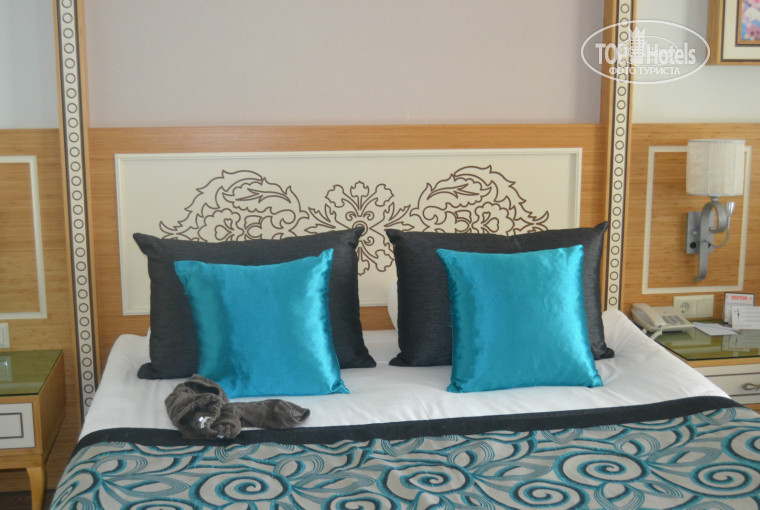 Мы отдыхали с 27 апреля по 4 мая 2014 г. Был не сезон, поэтому путевки были относительно недорогими, но отель не подкачал. Приехали мы в 11 утра, т.к. заселение с 14.00, то сначала нас отправили на завтрак...но мы были с ребенком 1 год 9 месяцев, попросили сразу заселить, и за 5 долларов нас благополучно заселили. Мы с мужем и ребенком поселились в просторном номере...с одной большой кроватью и односпалкой, с нами отдыхали мои 2 подруги, которых заселили пососедству (в аналогичном номере). Номер был чистым, полотенца,уборка,пополнение мини-бара производилась ежедневно) Еды было очень много+очень много мяса: индейка,курица,говядина,телятина,баранина...все возможные сыры, омлеты, макаронов и картошки куча в разных вариантах - в общем объеденье))) Про сладости я вообще молчу (просто рай для сладкоежек). Турки очень любят детей, поэтому мой малыш пользовался большой популярностью у персонала. Аквапарк просто очень замечательный. казанский аквапарк с ним просто не сравниться. вообщем отличный, очень красивый и ухоженный отель))