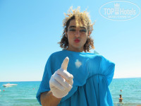 Дальше пляж, хоть и маленький но очень чистый. Лежаков не много, но нам хватало причем мы были в разгаре сезона.Есть детский пляж отдельно находится.Вход в море отличный песочный и пляж песочный. Рядом бар где наливают напитки, как алкогольные, так и безалкогольные. Много фруктов постоянно. Постоянно ходят аниматоры и зазывают участвовать в различных конкурсах,скучно там не бывает. В вечернее время если хотите посидеть и послушать живую музыку советую посетить гарден бар отличное место. так же есть дискотеки под открытом небом как 90-х так и современная музыка и это все практически до утра. Отель оправдывает свое название (клубный отель) веселья тут хватает как для детей так и для взрослых. Чуть не забыл есть детская комната очень хорошая.