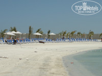 Пляж большой, из дробленых ракушек, весьма утрамбованный, ходить босиком лучше с осторожностью, можно наступить на острый осколок. Вход в море пологий, волн нет, однако, на дне очень много живых моллюсков в ракушках и наступать на них не очень приятно. Лежаков и зонтиков хватало всем и всегда. Пляжные полотенца выдают по карточкам. По пляжу иногда ходят официанты и предлагают напитки.