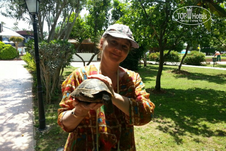 Территория отеля, как всегда прекрасна! Настоящий цветущий сад, по которому мы с удовольствием прогуливались в течение дня. Дети с восторгом наблюдали за различными ящерицами и черепашками, которых в мае здесь огромное количество. Черепашек можно было встретить буквально повсюду и всех размеров, от малышей до больших черепах. Видимо в мае еще не жарко и они не прячутся, как летом.