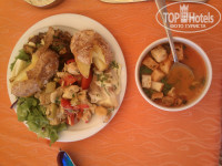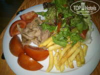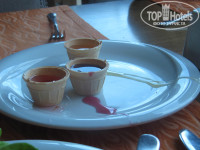 Еда разнообразная. Претензий не было. Мы в основном брали зелень, овощи и мясо. Из мяса в основном курица,один раз была индейка. Фрукты (яблоки, апельсины, грейпфрут, клубника) и сладости (большое разнообразие) тоже были. Посуда чисто вымытая, следов помады, как тут пишут некоторые, ни разу замечено не было. Обслуживающий персонал кухни приветливый. В первые дни отдыха бар возле бассейна полностью был бесплатным, потом, когда отель стал наполняться, коктейли стали платные. Но можно глазки построить и угощают бесплатно ))