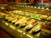 Если про ассортимент, то насчитал 50 (пятьдесят!) блюд с овощами и салатами в различных вариациях.более тридцати видов выпечки и различных тортов бисквитных, суфле, кексов и пр. сладостей (это моя слабость). Картошка, рис всегда в нескольких вариантах. Сосиски, бифштексы (как в габмбургерах), перцы, мясные пироги, омлеты, "яичница на заказ" это тот