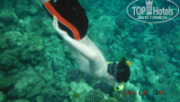 (Для справки ныряльщикам: Ездили на катамаране,направо 5 км. от отеля, ныряли в двух местах вода на вытянутой руке вниз от поверхности просто ледяная!). Так что рыб как минимум видов 20 плавает прямо у отельного рифа, включая скатов, мурену и много кого еще.И обладатели маски с трубкой всё это могут увидеть никуда не уезжая. Снова плюс отелю.
