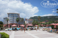 36. Давайте об отеле. В поселке Кириш наш отель в первой пятерке от Кемера. Состоит из главного здания, двух поменьше и каких-то странных домиков у проезда. На территории три бассейна. Один большой, один поменьше с горками и один детский 30 сантиметров в глубину. Отель зеленый, горы, цветы, все такое. Красиво - спасу нет.