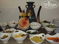 Ресторан при отеле один,разделенный на 2 части: закрытую и открытую. Питание разнообразное,а главное вкусное: баклажаны,всевозможные овощи,салаты,курица в вариациях,картошка-пюре,фри, рис, рыба,супчики-пюре,пицца, блинчики и куча всего прочего и вкусного. Из фруктов нам давали: арбуз, дыню, яблоки, апельсины, клубнику. Тортики, ароматные булочки,мороженное и много-много чего еще.