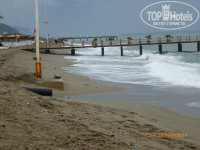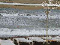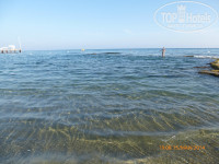 Бассейн не очень большой, есть бассейн совсем для малышей, вокруг бассейна шезлонги с матрасами, зонтики, 2 горки (работают не постоянно). Пляж не очень большой, крупный песок, ближе к воде галька покрупнее, встречается крупная, вход в море галечный, заходить нормально, выходить сложновато, справа от пляжа разрушенный пирс, из бетонных блоков. На пляже шезлонги, матрасы, навесы от солнца, урны, маленькие пластиковые столики.