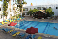 Отдыхал в этом отеле с 27.04.2014 по 04 .05.2014. Сам отель находиться в удачном месте. В самом центре города на главной улице. Сам отель хороший и номера и бассейн. Брали без питания. Хотя отель его и предлагает.Номера студио. В нем есть кухня( с плитой, холодильником, чайником, тостером. и необходимой посудой- тарелки, вилки, кастрюльки, сковородка и т.д.), обеденный стол , двуспальная кровать и диван, трюмо с зеркалом. Балкон с пластиковой мебелью. Розетки все евро. В отеле предлагают переходник за 3 евро. Но проще купить в маркете за 1.5 ). В целом номер чистенький, ремонт приличный, мебель не ушатаная) Уборка по моему раз в два дня( точно не помню)) При выходе из отеля сразу на против через дорогу самый недорогой маркет и парк аттракционов. Налево за углом отеля прокат великов- от 6 евро сутки, байков от 20 , и багги от 25 по моему. Чем на дольше берешь- тем дешевле. Проката машин тоже много. Движение левостороннее. Есть специально оборудованные вело дорожки. Права нужны. Если пойти направо от выхода из отеля- кафе с бесплатным вай-фаем. Далее доходим до перекрестка со светофором на право- дорога на пляж Лиманаки ( идти где то минут 7 от отеля мимо ресторанчиков и магазинов- совсем не напрягает.) Пляжи муниципальные чистенькие, заход супер, песочек.Вода прозрачная. Красивая набережная. Для деток вообще супер. Лежаки зонты по 2 евро- можно не брать) На пляже душ и кабинки для переодевания. Если пойти налево от светофора- там будет улица ночных клубов и кафе. Вот там и кипит все ночная жизнь. Цены в кафе от 5-7-10 евро. Порции большие)) Есть еще пляж Нисси бич- очень красивый, но до него пешочком с полчаса. Можно на велике или автобусе- тогда быстрее. Ездили в Протарас на великах ( где-то 12км.)- очень понравился и город и его пляжи и сама вело прогулка. По пути заезжали на Каво Греко- мыс с которого открывается потрясающий вид на город и море. Кипр понравился. Море супер. Отель в отличном месте и до клубов и до моря не далеко) Посоветовал бы отель для молодежи и для пар. А также для не притязательных туристов( которые не ищут все включено и качественно прокрашен ли косяк на двери)) Иногда английская молодежь до утра купается в бассейне после возврата из клубов. Но их старается ганять администратор)) Вобщем Айя-Напа город клубов, хороших пляжей и активного отдыха. Без раздумий еще раз вернусь в этот отель. Цена соответствует качеству. Всем хорошего отдыха!