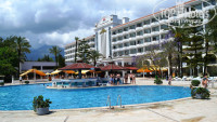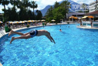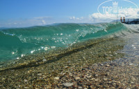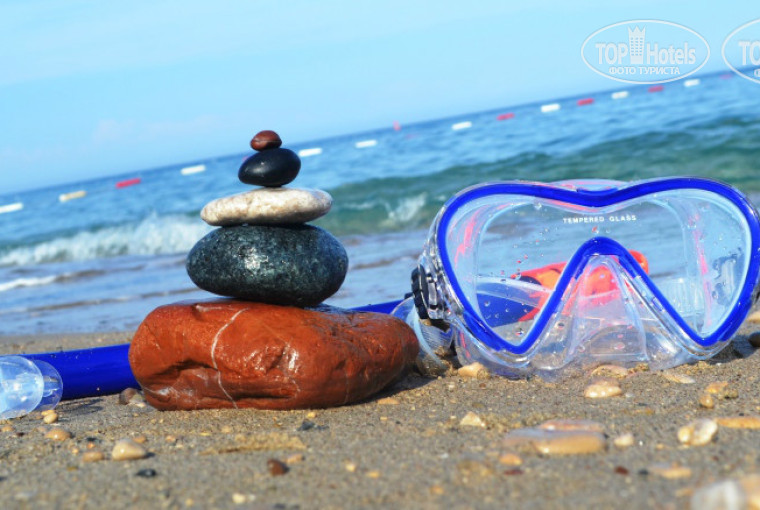 Территоря отеля вся в зелени. Ухоженная и красивая. Видов для фото и видео предостаточно. Пляж песочный. Вход в море мелкая галька, дальше крупные округлые камни. В море практически не купались. Вода была холодная. Хотя желающих поплавать и попрыгать с пирса было достаточно. Мы проводили время в основном возле бассейна и в аквапарке за главным корпусом. На море - прогулки на катере, шхунах, парашюты и т.д. (платно)