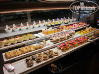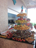 рыба всегда на гриле и пареная-тушеная, курица - шашлык и несколько видов обработки, индейка или говядина. Плюс всякие кебабы и котлеты. То есть мяса много. Зелени много как везде. Гарниров тоже много всяких на любой вкус: и запеченное, и отварное, и жареное. Несколько раз было рагу из морепродуктов - скромное (мелкие креветки и кальмары вперемешку с кукурузой). Несколько раз была огромная рыба на гриле красного цвета - может, форель, не знаю, вкусная очень. пару раз была говядина такими огромными кусками, жареная, видимо, на вертеле. От этих кусков отрезали ломти и раздавали. Один раз был китайский вечер - стол с суши, интересно. Вообще еды очень много. Мы супы не пробовали, другие отдыхающие хвалили. Много отварных овощей - овощные букеты: брюссельская капуста, цветная, обычная, кукуруза, шпинат и так далее. Много сладостей в главном ресторане, а ведь есть еще и кондитерская!