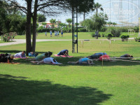 Если с детьми занимаются в бассейне или делают зарядку на улице - смотрят, чтобы все были в панамках, дают полотенца, помогают переодеваться и складывать мокрые купальники. Большинство занятий проводят на открытом воздухе, но под крышей от солнца.