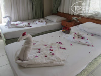 В этом отеле отдыхали с 23.04.2014 г. по 09.05.2014 г. с коллегой по работе. Путевку приобретали через интернет у туристического агента "Пегас". Отель выбирали сами, так как нам очень понравилось расположение по отношению к морю и центру города, мы рискнули ехать в этот отель хотя прочитали много отрицательных отзывов. Приехав на заселение были приятно удивлены наличием в отеле на рецепшене русской девушки Татьяны. В 2010 году я была в этом отеле в качестве гостя у друзей, которые там отдыхали, то хотела чтобы нас заселили в тот номер, но он был занят, временно до его освобождения нам предложили другой, но когда мы в него зашли, то увидели что там одна 2-х спальная кровать, что нас не устраивало, нам тут же предложили другой номер 513, с двумя кроватями и шикарным балконом, в нем мы решили остаться на весь период нашего отдыха. С балкона вид был на горы и на море, на соседнюю крыши где была голубятня....романтика. Отель и персонал очень гостеприимны, еда была разнообразная и вкусная, всем хватало, так как мы жили там очень долго, то пару раз мы ходили ужинать в ресторан, соскучились по русской еде. В номерах убирали хорошо, ваяли нам "слоников" и "лебедей" на кроватях, полотенце и постельное белье меняли по первой просьбе без разговоров. С маленькими детками в этом отеле будет отдыхать не очень комфортно в плане еды, я наблюдала за детками, которые отдыхали при нас, они очень плохо кушали, и родителям было сложно их накормить, а в плане развлечений, рядом красивая детская площадка, прокат велосипедов напротив, ну и кончено суперский песчаный пляж. В номер мы заселились в 17.00, а в 18. 00 мы уже поехали в хамам, где пробыли больше 3-х часов, в мой первый приезд в Турцию, я ходила в хамам, который был у нас при отеле, отличие было только в наборе процедур, отношение и качество было на высшем уровне и тогда и сейчас, заплатили за двоих 35 долларов. Ездили на экскурсию "Джип-каньон", красота неописуемая, адреналина конечно не хватало, так как в нашей машине ехала семейная пара с ребенком 4-6 лет, то водитель старался ехать очень аккуратно, но что выделывали другие водители)))), кормили очень вкусным обедом на берегу озера, предлагали половить рыбу, мы пытались, но ничего не вышло, на хлеб рыба не ловилась(((((, отдали 70 долларов за двоих . Были на "Турецкой ночи" в замке 13 века, танцевальное вечернее шоу, тоже кормили, так как шоу начиналось как раз в то время, когда в отелях начинался ужин, 70 долларов на двоих за это удовольствие. И еще ездили на шоу "Огни Анатолии" постановка "Эволюция" 100 долларов на двоих, танцевальное шоу, очень-очень красивое. Единственное что нам не понравилось, так это то, что нам не сказали, что это под открытым небом, мы легко оделись и ужасно замерзли, умные люди взяли с собой пледы и подушки на сидения....а мы сидели смотрели шоу и думали как бы нам не заболеть. Все покупки делали в турецких кварталах, где практически не бывает туристов, объяснялись с помощью жестов, так как не английского, не русского языков продавцы не знали, там намного все дешевле, отличное качество, огромный выбор. На нашей улице, напротив отеля мы купили только магнитики, так как их цена везде одинаковая. Несколько раз ходили на Балык базар он бывает по вторникам и пятницам, там тоже реально купить качественные вещи за небольшие деньги, самое главное торговаться-торговаться и еще раз торговаться. Д
