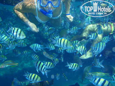 Последнее. Отправляясь в Шарм, четко понимайте, что там все пляжи представляют собой коралловые рифы. Лично для меня это хорошо. Но многие женщины и дети боялись плавать в море из-за огромного количества рыб, пасущихся возле понтона. Некоторых (меня тоже) эти рыбы даже кусали. Но это не страшно, хотя и не приятно. Есть там небольшая серенькая рыбка, похожая на карася, которая таким образом охраняет свою территорию.