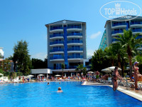 ехали до отеля 1.5 часа по приезду на рецепшене сдали паспорта и пошли завтракать так как мы приехали в отеля рано Пока завтракали нам подготовили номера и уже в 10 часов утра мы были в номере Отель в стадии реконструкции компактный еды хватало а про спиртные напитки вообще молчу пей хоть не переставая насколько позволит организм! Поэтому я пожалел что с собой взял две бутылки водки Были в местном ХАМАМ это баня со всякими видами но очень понравилось специальная процедура с рыбками которые в аквариуме нам чистили если так можно сказать ноги! Интересная поездка двухдневная была в Памукале !Весь прикол нашей поездки был в том что у нас была русская гармонь и три гармониста и 5 вечеров перед входом в отель мы делали концерты под гармонь среди русских туристов при этом это было рядом с магазином Сотрудники магазина почти все говорят на русском нас полюбили и почти все покупки мы сделали в этом магазине с большими скидками Очень нам понравилась продавец Сабина которая уговаривала турецких продавцов нам отдавать товары со скидками Во время наших концертов в отеле Сабина специально для нас просила разливать местное гранатовое вино и розовое шампанское