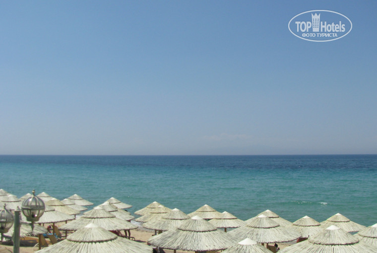 Пляж у отеля собственный. Лежаки и зонтики бесплатные, как и возле бассейна (всем хватало). Пляжные полотенца выдают под залог ( 10 евро). Пляж песчаный, чистый. Вода в море чистейшая, заход в море плавный-вначале песок с галькой, потом чисто песок. 25 шагов в море и мне море было по плечи (при росте 168см). Утром море было прохладное, примерно +16, после обеда и море, и песочек прогревались. К моменту отъезда в море было примерно +18+19 градусов. Купаться можно было. Ну а для кого море казалось холодным, можно было пойти в бассейн, где вода пресная, но очень теплая и хлоркой не пахнет. Вообще прогноз погоды можно всегда посмотреть на ресепшн. Совет руководству отеля-впишите туда и температуру воды. На момент нашего приезда в воздухе было +23, к отъезду +31. Так что не забудьте о солнцезащитных средствах, чтобы не сгореть как я при +23.