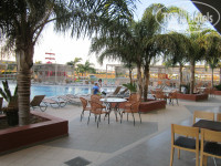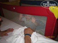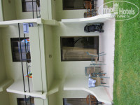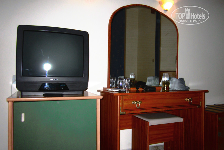 В нашем номере №137 помимо дет.кроватки и двух совмещенных кроватей, находилась еще и третья полуторка. Мебель старенькая, впрочем не рассчитывали на шик за такие деньги. Мы остались довольны расположением корпуса – в относительной удаленности от баров (не слышно музыки), но в тоже время вблизи ресторана и бассейна (в минуте ходьбы). Наш номер находился на 1 этаже и имел выход на террасу, что нам показалось очень удобным.