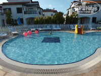 В самом отеле много бассейнов, большой «основной» с отделением работающих по расписанию водных горок, несколько небольших 30-метровок между корпусов, также с шезлонгами, релакс-бассейн около реки (я так понимаю, там желательно находиться без шумных детей) – в общем, любителям покупаться в общей хлорной воде найдётся место и в сезон (хотя надо отметить, что хлор сильно не ел глаза)). Также есть два маленьких детских бассейна, простая круглая лужица и бассейн с маленькими водными горками.
