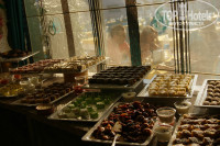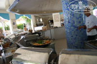 Питание- завтрак обычный, обед и ужин-шикарные. Постоянно мясо и рыба на гриле и много всего вкусного на любой вкус. По понедельникам ужин особенно праздничный. но в этот день народу-тучи, приезжают много турков, но хватает всем. пополняют блюда тут же и столики убираю быстро. По понедельникам давали тунца ,запеченного в соли и крабовые шарики-вкусно.