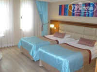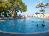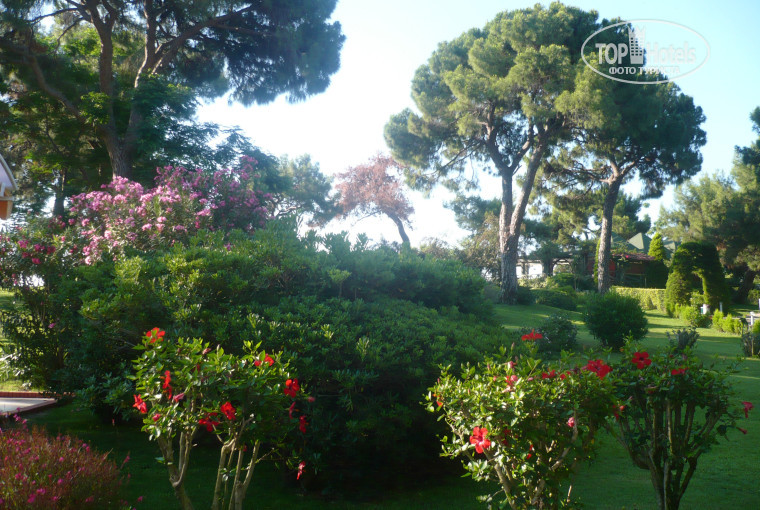 Самым ярким впечатлением в этом отеле была территория - красивая, чистая, яркая..не хватало только шоколадных рек и конфет на деревьях, как в "Вилли Вонка и шоколадная фабрика" :-). Было крайне приятно созерцать такую красоту. Огромное спасибо людям, кто постарался над тем, чтобы доставлять гостям такое удовольствие. Приятно удивил номер. Всё довольно новое, интересный дизайн, отличный санузел. Единственное, что разочаровало - это отсутствие балкона в доставшемся нам Де Люксе, некоторая сырость в номере и сумасшедшие курящие соседи с возможностью проводить ночь под нашими окнами, но это претензии не к отелю, конечно. Что касается питания, то я в общем-то довольна, но особенно выпечкой (булочки, пицца, бублики, тосты). Она всегда свежая, с пылу с жару, хрустящая, мммм..Понравился цыпленок табака, мои любимые баклажаны, сметана с зеленью, мясо на гриле. Из фруктов очень не хватало персиков. Зато давали через день крупную и спелую черешню. Посетили средиземноморский ресторан. Если честно, остались недовольны и пожалели, что не пошли в привычный. Надеялись поесть морепродуктов, как на картинке в проспектике, но не свезло. Так называемый кекс съесть вообще не смогли. Больше никакие рестораны не посещали. Относительно анимации. Слабовата на мой взгляд. После аниматоров отеля PGS World Palace угодить с развлекаловкой нам будет не легко))) Не дотягивают. Сезон только начался, а ощущение, что они устали. Контингент: семьи, молодежи не много, зато очень много детей от мала до велика и все плачут и чего-то требуют (казалось бы ну что ЕЩЁ надо в этом райском месте?))). 20% русских, остальные - немцы, украинцы, голландцы, гости из Косово, Словакии и т.д. Родной речью утомлены не были))), даже соскучились. На пляже питерская дама в возрасте чуть не съездила по лицу женщине с мусульманской внешностью, которая самым наглым образом сняла с зонтика платье нашей соотечественницы и неоднократно кинула его на лежак. Был конфликт с разбирательствами и привлечением охраны. Неприятно. Море супер. Никаких черепашьих фекалий нет и в помине. Зеленые лежаки заняты всегда. Лежаки с желтыми матрасами почему-то найти менее проблематично, они всегда есть в наличии, никем не занятые.
