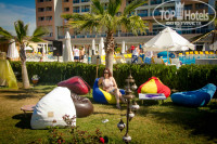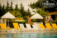 По приезду на ресепшне была суета так как нас всех за заест было довольно много. Одели браслеты отправили на ужин, после ужина сказали подойти за ключами для номера. Конечно же после ужина мы подошли, но пришлось ещё немного ждать когда они нам их дадут, но мы люди терпеливые и все таки дождались и в районе 22-00 уже были в номере 1308 на третьем этаже носильщика ждать не стали сами запрыгнули в лифт и нашли номер. Номер сразу, скажу достался не с видом на море, а на другую сторону отеля как заезжать в него, но нас всё устроило, чисто убрано всё работала претензий не было. В течении всего времени проживания меняли 1 раз постель, каждый раз в холодильники оставляли 1$ и холодильник наш постоянно был полный от воды и минералки. Переночевали и на следующий день пошли охватывать просторы отеля. Территория отеля сама не большая но очень уютная, и зеленая, очень много красивых цветов. Бассейн очень большой и удобный для плаванья, их три всего основной большой маленький лягушатник и ещё один для водных горок. Кстати про горки они каждый день работали с 10 до 12 дня и после обеда с 15-00 до 17-00 дети наши были в восторге. Большую благодарность хочу выразить аниматорам отеля с ними получалась познакомится на только на третий день пребывания Дениз супер аниматорам респект и привет! его слово шлакс от игры Дарц до сих пор на устах!!! Айлана умничка детишек развлекала в мини клубе «была на время мамой нашим деткам» большое ей за это спасибо! И вообще всем ребятам огромное спасибо за то что есть силы веселить отдыхающих. А вот про контингент отдыхающих могу сказать отдельно, это капец, многие писали про то что турков много в отеле в наш заезд их практически не было, а вот быдляковых Россиян хватала и это большой минус так как их было много. Теперь про еду! Еда разнообразная, хотя многие пишут что есть нечего было, не верте !!! Она реально каждый день разная была, рацион был мидии кальмары шашлык рыбу, а кто не ел в наш заезд могу сказать одно приходить нужно особенно на обед и ужин к открытию тогда всего валом и полно. К 20- 00 конечно разнообразия уже не будет такого, по этому ,кто на будущее поедет вам совет приходить раньше.