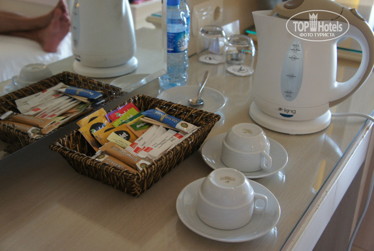 В номерах чисто,убирают хорошо.Есть фен.Во флаконах жидкое средство представлено как "для волос и тела". На второй день принесли зубные щетки,пасту,пену для бриться и станок,мыло с логотипом Кайа,но по сути мыло Дав.На третий день принесли чайник и чайную корзинку сами.Бар пополняют каждый день : кола,спрайт,фанта,пакетированный сок 200 мл,мин. газ вода,питьевая вода. В последние дни стали ставить пиво Эфес в ж.б.