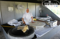 Справа от бара на пляже есть небольшой шатер,где колоритная турчанка в белых одеждах жарит местные лепешки с начинками при вас. Рекомендую посетить!