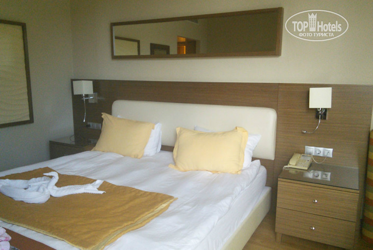 Отдыхала в отеле в первых числах мая - в самом начале сезона. Номер достался отличный - угловой, поэтому, наверное, не совсем стандартный - длина балкона - 10 метров! :) Окна, правда, выходили на дорогу, поэтому особо тихо там не было, но не критично, конечно.