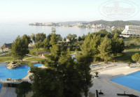 От аэропорта нас везли долговато, так как по дороге развозили туристов в другие отели, а наш Meliton был предпоследним пунктом назначения, после нас остались только туристы Sithonia, поэтому после полета дорога к отелю показалась утомительной. Но когда мы оказались в отеле, увидели номер и территорию, вся усталость улетучилась. Отели Порто Каррас - Meliton и Sithonia обособленный курортный комплекс, расположены отели далеко от бурлящей жизни и в целом предназначены все же для семейного отдыха, либо для веселых, самодостаточных компаний. До ближайшего городка Неос Мармарас можно ходить пешком, это не сильно утомительно, если идешь прогулочным шагом и налегке. Либо от Meliton ездить на катере, в одну сторону 2,5 евро. Там особо нечего смотреть и достаточно тяжеловато бродить по некоторым улочкам, поднимаясь постоянно в гору. Мы ездили туда побродить по магазинам и в таверну, пообедать, отведав греческих блюд. Мы были в таверне Та Кимата, нам ее посоветовала агент встречающей нас турфирмы Mouzenidis Travel. Неплохая таверна, но ничего восторженного написать не могу. Рядом с этой таверной есть еще Лиманаки, тоже неплохие отзывы об этой таверне слышали от отдыхающих с нами. По территории Порто Каррас в первой половине дня каждый час ходит паровозик (бесплатно), с заездом на дегустацию вин (это дополнительно по 2 евро с человека), но можно остаться и возле паровозика. Мы заходили в магазинчик, дегустировали вина и купили с собой набор вин.