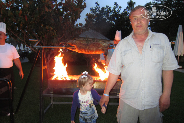 В отеле отдыхали впервые. Нас было 3 взрослых и ребенок 5лет.Очень понравились представители Тез Тур Нурай ,Александра и Елена все очень приветливые и внимательные. А аэропорту нас встречала девушка Оксана, всю дорогу нам рассказывала о достопримечательностях Турции, поэтом у не заметили, как доехали до отеля. Разместили нас быстро на 1 этаже, денег не давали. Убирали номер ежедневно но плохо. Клали по доллару, но это никак не отразилось на уборке. Лебедей ни разу ни делали, хотелось внучку удивить. Аниматоры просто супер!!!! Дети почти целый день в детской комнате, с утра игры после обеда занятия!!! Взрослые тоже находили занятия по интересам! Очень понравились вечерние представления!!!! СПАСИБО АНИМАТОРАМ!!!! Питание разнообразное, всегда всего вдоволь, вот только мне показалось, что салаты с майонезом не очень свежие (пахло кислым)их даже брать не хотелось, может это от майонеза был кислый запах. По понедельникам на ужин жарили барана на вертеле!!!! Не понравилось, что работники ресторана никогда не здоровались. не знаю такое отношение к русским или ко всем туристам. Как то неприятно заходишь утром в ресторан, а персонал смотрит на тебя как на пустое место. В остальном отдых понравился. Море уже было теплое, купались с удовольствием. Но что то не очень хочется еще раз ехать в этот отель несмотря на все плюсы.
