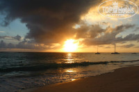 Территория отеля большая, красивая, есть натуральный аквариум с рыбками, черепахами, по территории ходят павлины, утки, ящерки ползают по пальмам, много разных птиц, на пляже летают пеликаны. Есть на территории у театра вальер с игуанами. Много разных красивых цветов. На пляже очень хорошо отдыхать, атлантический океан отделен от пляжа рифами, которые не дают волнам дойти до берега, так что купаться нормально. Особенно советую хоть раз сходить на пляж и посмотреть на восход солнца, можно сделать красивые фотографии и пофоткаться самим, обычно в это время не более 10 человек пришли с такими же планами (смотрите фото восхода). Так как потом народу будет много и красивых кадров сделать наврятли получится, скорее всего, какое нибудь тело с пузом за спиной кадр испортит, ну может без пуза, но все же не вариант по моему мнению. А еще утром во время восхода Вы встретите военного с ак-47 который прогуливается по пляжу, не пугайтесь это пограничник, они очень позитивные ребята, и всегда если Вы попросите, сфотографируются с вами) (смотрите фото).