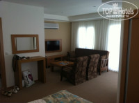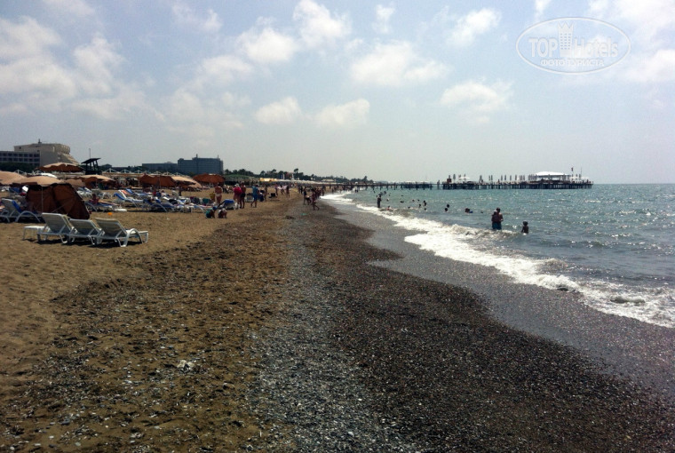 Отдыхали с женой с 26 мая по 4 июня. В отель из аэропорта прибыли быстро, разместили сразу (С27-5). Общее впечатление положительное, питание разнообразное, понравились супы-пюре, есть мясо и рыба, для детей каши, много десертов. Пару раз ужинали в ресторане на берегу, в первый раз все было отлично, во второй - не очень понравилось, не было музыки, часть посетителей ушла. Анимация есть и для детей и для взрослых, отдыхающие 90% русских. На территории несколько бассейнов, 2 горки, есть бассейны для малышни. Можно посетить сауну и хамам, массаж и спа платно. Из минусов- местами на территории мелкий ремонт, особо не мешает, и до пляжа - километром 7-8, ходит автобус каждые полчаса. кораблик на пляж не ходит! Сам пляж песчаный с небольшой полосой гальки, не очень чистый (по сравнению с тайским КоЧангом и на Бали). С 10 часов на пляже работает бар, с 12- подают обед. Лежаков и зонтиков на всех хватает. Персонал адекватный, на ресепшн дежурит русская девушка. Убирались в номерах каждый день, оставляли пару раз по 1$. Ни на какие экскурсии не ездили, пару раз выбирались в ближайший городишко Кадрию, остановка напротив отеля, ехать минут 10, и до Белека на рынок . Отель находится в районе дорогих отелей и гольф-клубов и является наверное самым недорогим, подойдет для отдыха с детьми.