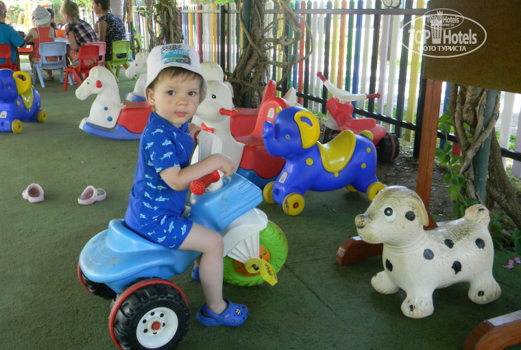Мы посетили этот славный отель с мужем и маленьким двухлетним сыном в мае сего года. Скажу сразу, сравнить есть с чем и серьезных претензий к отелю нет. Еда, обслуживание на высоте. Территория поражает обилием всякого рода плодово-ягодных деревьев (абрикосы, шелковица и тд) и неземной красоты цветов. Детская территория огорожена и очень интересна, кролики сразу поразили. В итоге мой лапун на море и в бассейн с нами идти не хотел, а все время тянул в этот смурф-клуб. Для нас с мужем тоже все интересно - горки прикольные, анимация на уровне (зумба, степ, морская аквааэробика) и я на все ходила.