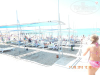А-ля карт бесплатный один раз, но по предварительной резервации. AI работает до 23:00. Пляж песчано-галечный, полотенца бесплатные, но чтобы поменять нужно заплатить один доллар. Вообще для Алании платные полотенца это характерно, поэтому можно не удивляться.