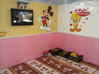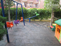 Есть детская площадка в саду, на ней качели, еще качели, домик и все)) Т.к. наши дети любят качели – то они были счастливы, но как нам показалось – место позволяет добавить еще горку например или домик. Детей много и в сезон всем места явно не хватит. На горку мы ходили на соседний пляж, когда выходите на наш пляж – поворачиваете налево, идете по пляжу отеля Белпорт, и далее – на пляже отеля АкваБелла в самом конце будет горка. Идти минуту-две, никто не гоняет с чужих пляжей, все ок. В предпоследний день нашего отдыха в поселке, недалеко от отеля (как выходите – направо – на территории Гринпарка) поставили обалденную большую детскую площадку, на фото есть, идти минут 5 до нее. Грин-парк – это многообещающее название небольшой огороженной улочки с магазинами, с парком ничего общего не имеет, но это единственная территория, где хоть как-то можно погулять с детьми, чтобы не около дороги было.