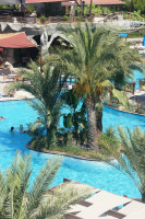 В бассейнах уйма хлорки !!! (читала отзывы и не верила), территория хорошая и ухоженная, к пляжу претензий нет, кроме лежаков и столиков к ним ( все в плесени, см.фото), а вот море не очень чистое т.к. слева в него впадает речка, и даже в июле ощущаются потоки ледяной воды, территория большая, анимация нормальная, но через каждые дней 7-10 начинается все по второму кругу. Аниматоры были хорошие, луна-парк не большой, но детей можно покатать, аквапарк - 3-4 горки (старые).