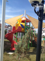 ДЕТСКАЯ ПЛОЩАДКА. На территории детской площадки есть горки, качели, домик и т.д. Все под навесом. Детский бассейн с горками. Есть туалет для деток. Мини-клуб работает с 10 до 12 и с 15 до 17. Детская анимация одна и та же, но деткам нравится.