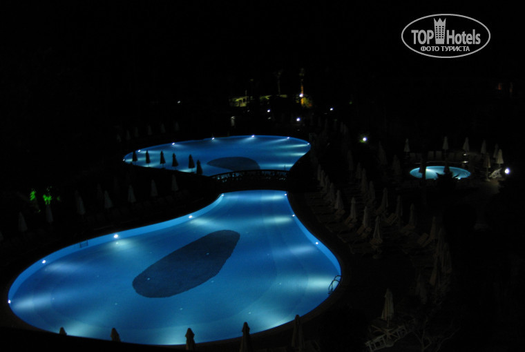 Всех наших друзей разместили в двухместные номера(с одной большой кроватью), номера рядом друг с другом, с видом на море. А нам достался номер standart - одна большая двуспальная кровать + 1 односпальная (т.к нас было трое), с видом на магазинчик в отеле. Но т.к нам не нужна была дополнительная односпальная кровать в номере,то мы попросили другой(двухместный, с одной большой кроватью) номер с видом на море. И дополнительно детскую кроватку-манеж. Нам предложили 2 номера на выбор. Первый так себе, от второго я была просто в восторге!!!!!!Шикарный вид на бассейн и море! Один маленький минус – ночью дискотека в амфитеатре и музыка слышна в номерах даже с закрытым балконом. Сначала это немного мешало, т.к с маленьким ребенком, потом привыкли. Ребенок спал даже днем возле бассейна под громкую музыку.