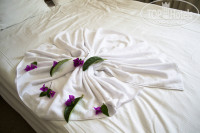 В номере убирали каждый день. Полотенца меняли каждый день. Постель поменяли 4!!! раза за неделю + живые цветочки на финтифлюшках на кровати. Банные приносили, мыло, гель, шампунь. Так же воду 1.5л. Чаевые оставляли.