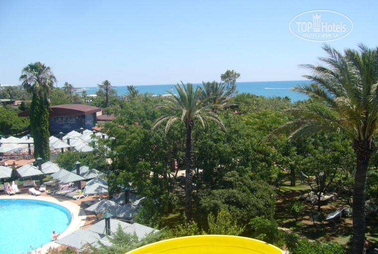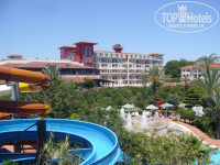 Несколько слов о самом отеле - он предусмотрен для отдыха с детьми разных возрастов, начиная с малышей. Аниматоры очень внимательно относятся к детям и возятся с ними целыми днями, разная программа на день и неделю, скучать не придется. Для взрослых разнообразные игры в течение дня и хорошие вечерние представления приглашенных артистов, действительно стоящее зрелище. Еда на любой вкус и цвет: за неделю всех блюд я так и не успела попробовать , а нашего привередливого ребенка легко удавалось накормить. Для малышей по утрам имеются молочные каши – гречневая, манная, рисовая и геркулес. Касательно очередей - они действительно были по вечерам, благодаря нашим голодным соотечественникам, но стоило подождать 5-7 минут и все было свободно, еда не заканчивалась и вкуснейшие котлеты, рыба, курица, стейки на гриле имелись в большом количестве. Практически каждый день тематический ужин - турецкая, итальянская, средиземноморская кухни. Из фруктов были арбузы, дыни, абрикосы, персики жестковаты, сливы, бананы, апельсины по умолчанию. На клубнику сезон кончился, а черешня еще не выспела из-за дождливой погоды этого года - их не было. В начале июня отель был полностью заполнен (3000чел), но столов всем хватало, если не на улице, то внутри обязательно были. То же обстояло и с лежаками на пляже и у бассейна. При нас привезли на пляж новые лежаки. Если бы не ушлые соотечественники, бросавшие полотенца на 3 лежака сразу и не приходившие вообще, все было бы еще лучше. Песок на пляже чистый, ребенок бороздил его на животе и не нашел никакого мусора. Впервые видела спец.технику которой просеивают и чистят песок по вечерам. Про мебелирование комнат ничего не скажу, так как у нас был Luxery и вся мебель, ковровое покрытие были новые, чистые, в ванной комнате все чисто и работало исправно. Отмечу тот приятный факт, что Администрация отеля однажды нас пригласила на встречу, где угостили закусками, коктейлями, шампанским, поблагодарила за выбор их отеля, поинтересовалась пожеланиями и объяснила некоторые моменты. В частности мебель в корпусах и основной ресторан будут полностью реконструированы к началу сезона след года т.е все номера будут люксовые. Разыгрывалась путевка в конце сезона в отель и это еще одна причина, по которой стоит регистрироваться на tophotels. Убираются сносно, не знаю, как часто обновляли шампуни – брали свои. Комаров, сырости не было вообще, зато было много живности для детей (черепахи, ежики. Кролики, утки). Так же открываются до обеда игровые автоматы. Оплата проводится жетонами, которые можно приобрести там же в кассе (4 жетона - $5). Вечером для малышей прокат электромобилей стоит 2 жетона, батут так же, игровые автоматы по одному жетону. Чем больше жетонов покупаешь сразу – так дешевле. Территория отеля заслуживает отдельной благодарности, все чисто и аккуратно. Постоянно убираются, моют, вытирают.