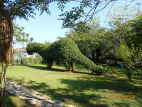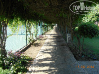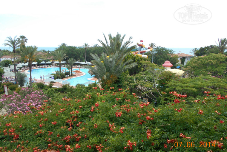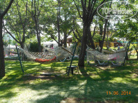 Территория большая, ухоженная, много зелени. Если выйти рано утром, то целая бригада из персонала уже трудится, как пчелки, наводя порядок. По дороге к пляжу – милый фонтанчик, где плавает форель и красные декоративные рыбки. На территории мини клуба живут кролики и утята, детишки их с удовольствием кормят. Очень порадовали водные горки. На самую большую детей до 12 лет не пускают, в целях безопасности. Есть большая поляна, в тени деревьев, с гамаками.