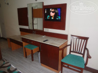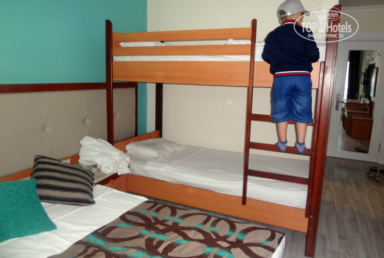 НОМЕР: номер был небольшой, спасла двухъярусная кровать, место для сна было много. Кондиционер, холодильник, телевизор, всё исправно работало. Только некоторые проблемки были с канализацией, вода не стекала и пахло сыростью. Прочитала отзывы, люди не увидели халатов, по моему только в дорогих отелях они выдаются, так что тут мы ничего и не ждали. В номере стоял сейф, которым мы не пользовались, никто ничего не берёт, не крадут. Мы не заметили что у кого то были проблемы связанные с кражами. Но думаю, стоит найти место, где можно спрятать деньги и документы, на столе их конечно хранить не стоит. В конце отдыха сломалась дверь, но её тут же починили. Номер каждый день убирали и меняли бельё, пару раз оставляли доллар, потом не стали так как хорошо убирала и без него. Шампуни, гели и всё такое прочее было изначально и потом еще пополнялось, много баночек привезли с собой.