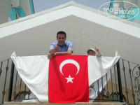 ПЕРСОНАЛ: вот по чему скучать мы будем, так это по персоналу, здесь он замечательный, все очень добрые, милые, улыбчивые. За дочкой постоянно официанты ходили. Если вы будете к ним хорошо, то и они к вам будут так же. Не надо мнить из себя что то, тогда к вам будут с душой. Мы очень хорошо общались с директором зала Рэмзи(на фото он с флагом), дочь с официантами подружилась да и сын тоже.