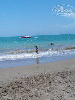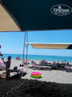 Пляж. Песчаный, море штормило 6-7 дней, убрать сухие водоросли никто не удосужился, вход галечный и резкий, за детьми нужно следить. Идешь по щиколотку и резко по колено. Лежаков хватает. Пляж сделан не удобно, все лежаки под тентом далеко от моря, т.е если Ваш маленький ребенок любит играть на берегу, то ваша учесть жарится под солнцем, т.к зонтиков у берега нет, а тенты далеко. В общем «все для людей».