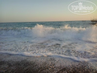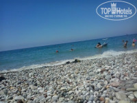 ТЕРРИТОРИЯ небольшая. На пляже лежаков много, хватает на всех. Выдаются пляжные полотенца каждому выдаются всем.Пляж галечный. Имеется бассейн, но мы в нем купались лишь раз, перед отъездом. Вода хлорированая. Есть горки, но больше на них детишки катались. Когда были большие волны на море, то народ больше купался в бассейне.