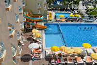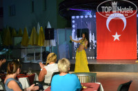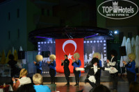Анимация. Вот тут этот отель просто на все 100%. Для детей, для взрослых, для молодёжи - анимация на любой вкус. Каждый день новые конкурсы, танцы, рисование, призы. Мы прилетели 9-го мая, и наш отель был заселён только русскими, в итоге, для нас включали гимн России, затем военные песни типа "Катюши". Аниматоры русский язык знают и поэтому подпевали нам. Но анимация не только вечером. Днём, по мимо аквааэробики, проводили аквафутбол, метание дротиков, и различные конкурсы в бассейне. Ну а после 22:30 всех приглашали на дискотеку в Аланию, либо приглашали на дискотеку, которая проводилась внизу отеля (бесплатная).