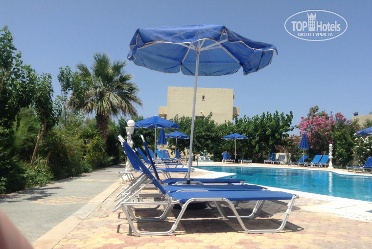 Тур этот был спонтанным, так что рванули мы в первую попавшуюся гостишку, ибо забрали его(тур) на "флажке", оплатив менее чем за сутки до вылета (завтрак +ужин). Летели с Пегасом. Планер вылетал из Домодедово и был задержан на час, что в принципе не критично. По приземлению в Ираклионе, оперативно прошли паспортно-таможенный контроль, забрали сумки с ленты и выйдя на улицу погрузились в положенный по трансферу до отеля бас. Ехали из аэропорта до гостишки минут 20. На ресепшене находился управляющий(на сколько я понял) отеля. Он с ходу нас отправил на заканчивающийся завтрак(7:00-9:30), со словами:"Сначала кушать, потом оформляться"