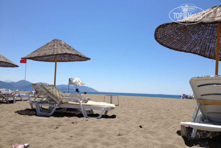 Пляжу тоже можно поставить 4. Там в основном одни русские, иностранцев видела всего пару раз, они все отдыхают у бассейна. Пляж дикий, инфраструктуры особо никакой, до ближайшего бара надо немного пройти, лежаки далеко от воды, зонтики дают мало тени и очень горячий песок. Я про это все знала, когда ехала в отель, так что меня это совсем не напрягало. Хотя песок на самом деле раскаленный, идти по нему невозможно даже в тапках, из-за этого лишний раз вставать и куда-то идти не хотелось. Море достаточно холодное 20-22 градуса из-за впадающих в него горных рек, я все равно купалась каждый день, но постоянно мерзла, бабушке нравилось. Бывают очень большие волны, заход в море галечный и достаточно резкий. Лежаки в нормальном состоянии и матрасы тоже. Еще читала, что на пляже грязно, я лично грязи особо не увидела, да несколько раз валялись пустые бутылки и окурки, но их убирали.