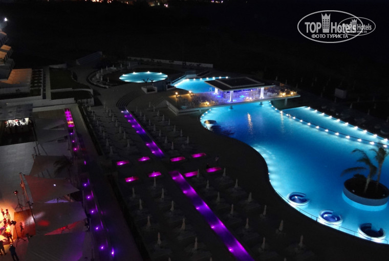 Приехали поздно вечером, заселили быстро. Красивый лобби, интересные дизайнерские задумки. Все новое, белоснежное. Номер дали с боковым видом на море, бассейн. Читала отзывы, что почти нет косметики, тапочек, на удивление были халаты, тапочки(на ребенка не дали, но думаю если бы попросили, то не отказали бы), мыльные принадлежности tsokkos: мыло, шампунь, гель для душа, кондиционер и крем для теля, ватные диски и палочки, шапочки. Кстати вполне приемлемое качество. Правда через пару дней заменили другой косметикой, мне не понравилось, да и возобновляли слабовато, крема для тела и ватных дисков больше не давали Фен в номере. Муж сразу взял переходник на ресепшене за минимальный депозит (розетки другие), хотели поменять его, но на ресепшене сказали, что закончились. Купили в местном магазинчике при отеле, цена около 2-3 евро. Мелочи, конечно, но впечатление портит. Думаю вскоре наладится.