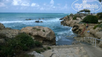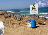 Если идти по направлению к Пафосу, то через 15 минут выйдете на песчаный пляж около отеля Venus, гиды в отеле не рекомендуют этот пляж из-за подводных течений. Но там есть плакат со схемой течений и в море место для плавания огорожено буйками. На пляже сидит бич бой и свистом предупреждает чтобы отдыхающие далеко не заплывали. По дороге к пляжу есть ещё один спуск к морю, лестницу не пропустите, ну он совсем маленький.