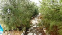 Территория не очень большая, но гид в отеле сказал, что можно гулять и в соседнем отеле Акти бич. Там же и вход в море с лестницей. Плюс в том, что из-за скал в бухточке намного меньше волн. Возле спуска в море достаточно зелено, пальмы, цветы, клумбы.