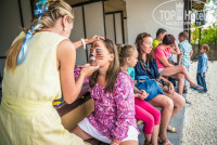 Вырвались из шумного города к морю и словно окунулись в другую реальность...Дочка была в восторге от двухъярусной кровати. Ползала по ним как мартышка, невозможно было вытащить ее оттуда даже к морю. Приятно удивило детское меню и терпеливые воспитатели, наша непоседа достанет кого хочешь, а тут почти два часа ребенок не вспоминал о родителях. Обстановка в отеле настолько необычная, что первый день фотографировались возле каждой статуя, рыцаря, на фоне доспехов и факелов в коридоре...Ну, и конечно, отдельное спасибо за вечерний вид... Замок в свете ночных огней неописуемо красив. Доча верещала, что она принцесса и просила платье, как у девушек на ресепшене...